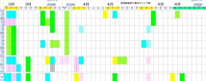2026年3月4月のご予約状況です。(③月19日現在。最新情報はお問合せください)